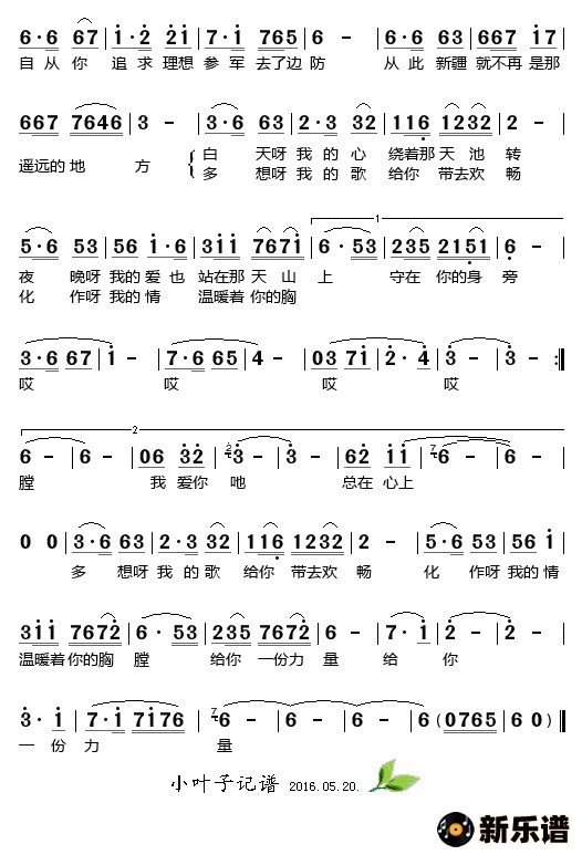 我爱的人儿在新疆最新曲谱