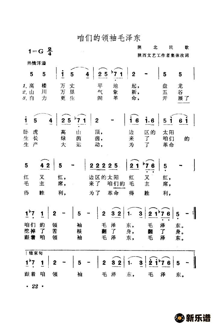 《陕甘宁边区革命民歌五首》简谱 陕西省歌舞团