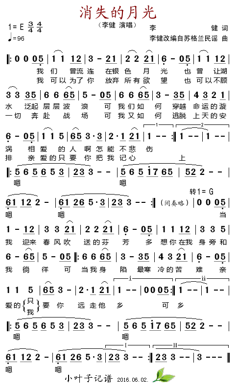 > 消失的月光简谱