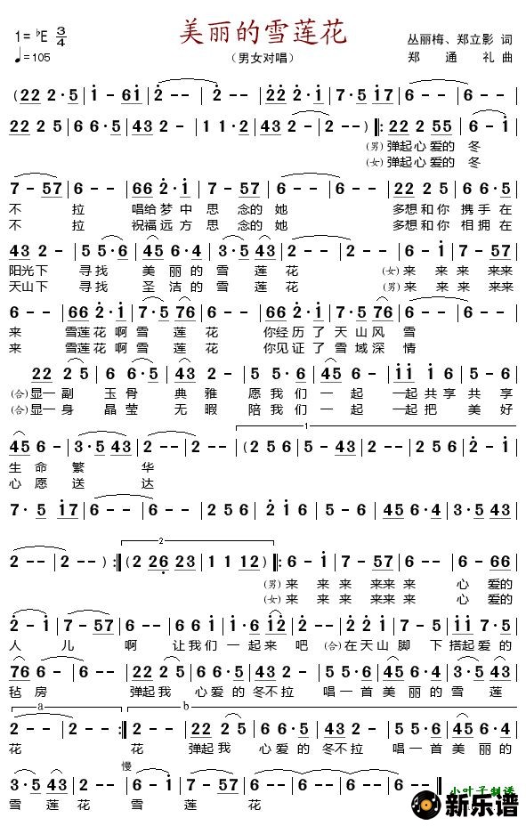 《美丽的雪莲花》简谱 男女对唱-小叶子制谱