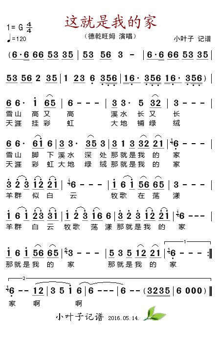 《这就是我的家》简谱 德乾旺姆-小叶子制谱
