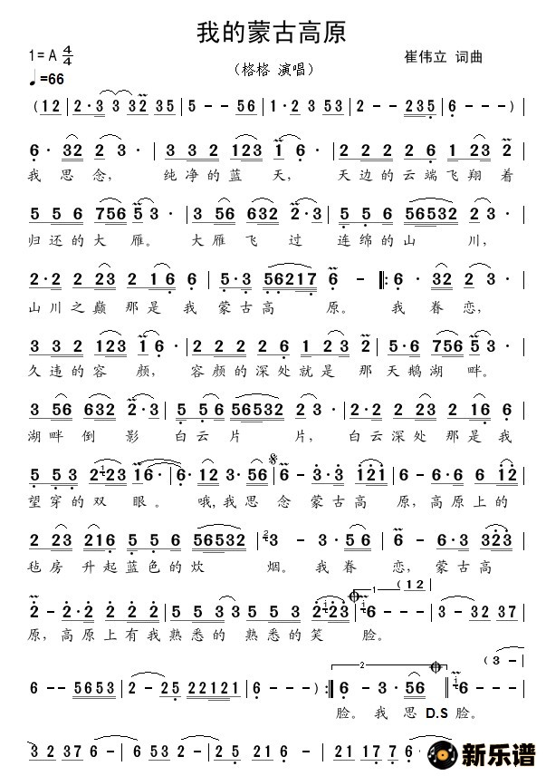格格演唱的我的蒙古高原歌词,我的蒙古高原简谱.