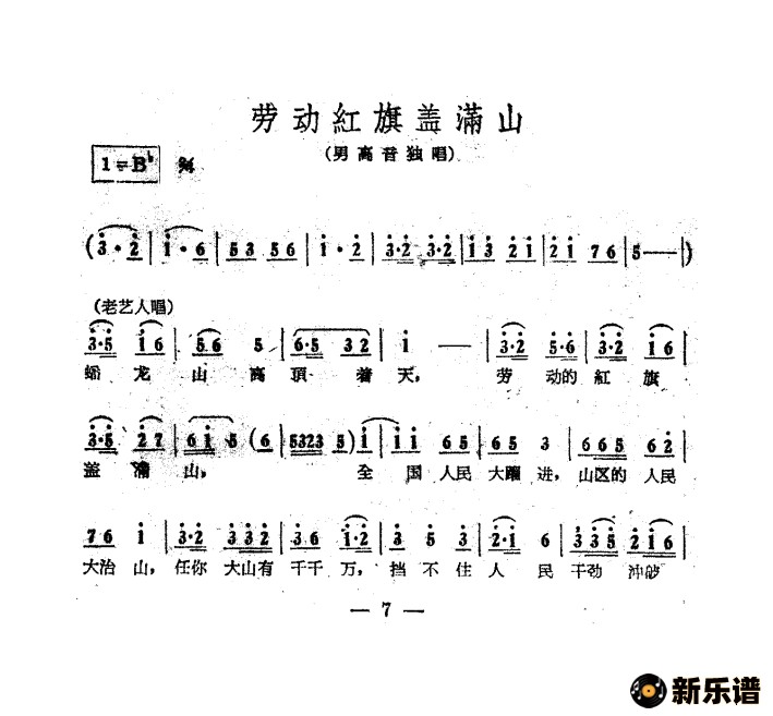 孟贵彬演唱的劳动红旗盖满天(电影《江山多娇》插曲)歌词,劳动红旗盖满天(电影《江山多娇》插曲)简谱.