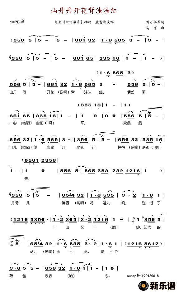 山丹丹开花背洼洼红(电影《红河激浪》插曲)/孟贵彬 红河激浪 相关曲谱