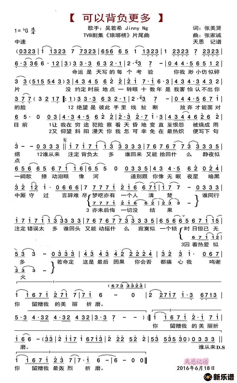吴若希 Jinny Ng演唱的可以背负更多(剧集 "琅玡榜" 片尾曲)歌词,可以背负更多(剧集 "琅玡榜" 片尾曲)简谱.