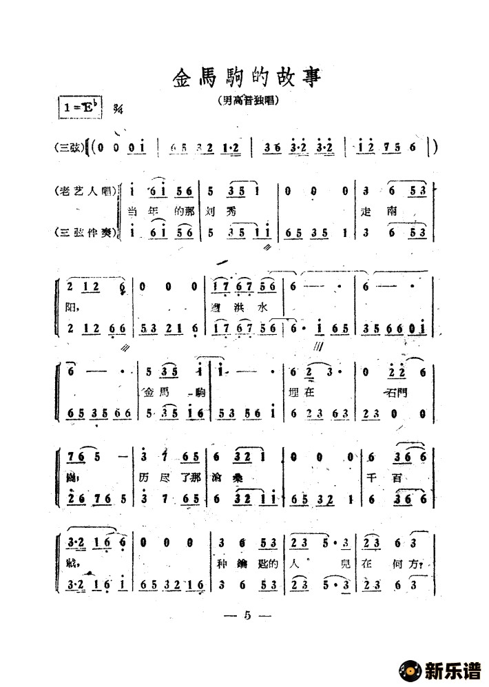 孟贵彬演唱的金马驹的故事(电影《江山多娇》插曲)歌词,金马驹的故事(电影《江山多娇》插曲)简谱.