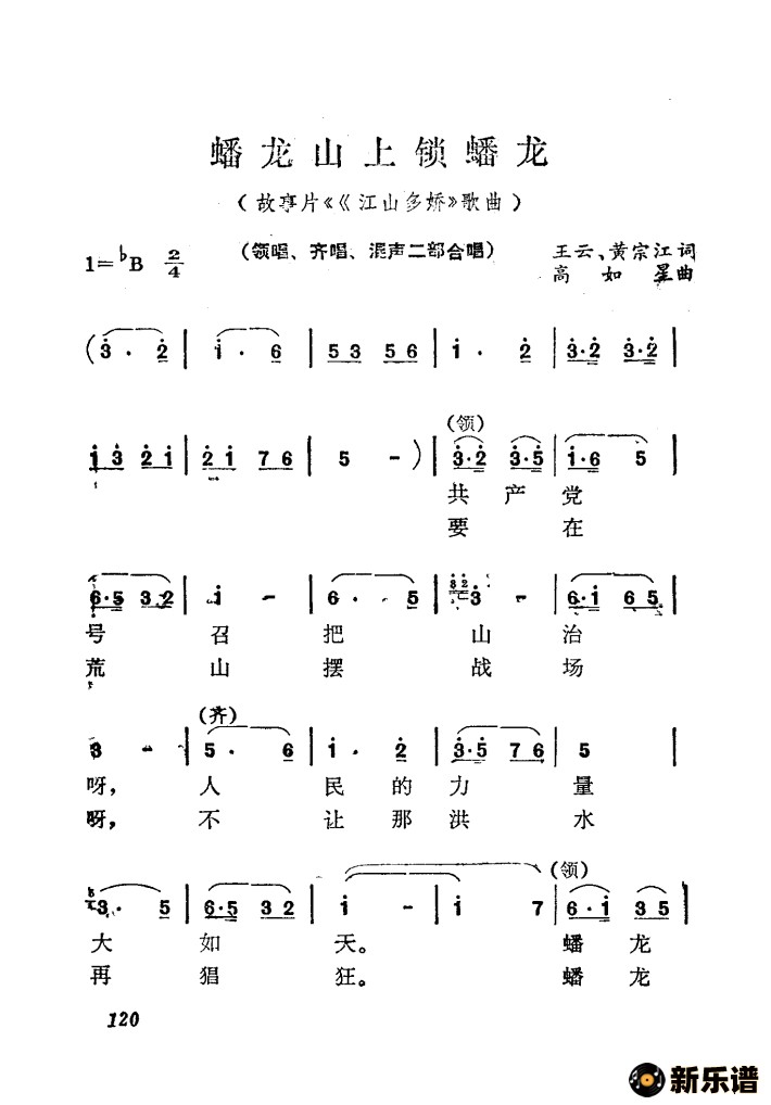盘龙山上锁盘龙(电影《江山多娇》插曲)/孟贵彬、马玉涛 江山多娇 相关曲谱