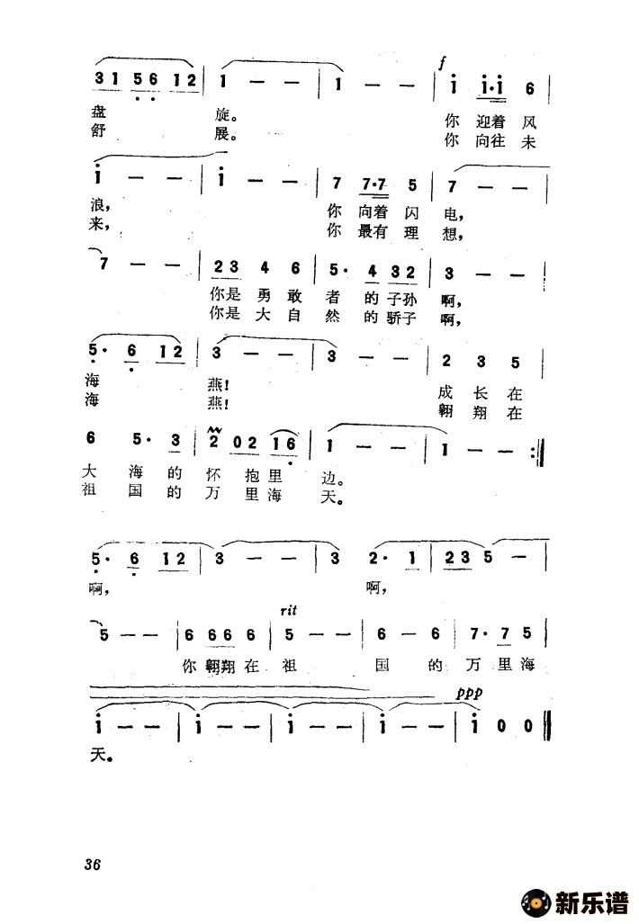 高飞的海燕(电影《海外赤子》插曲)/叶佩英 海外赤子 相关曲谱