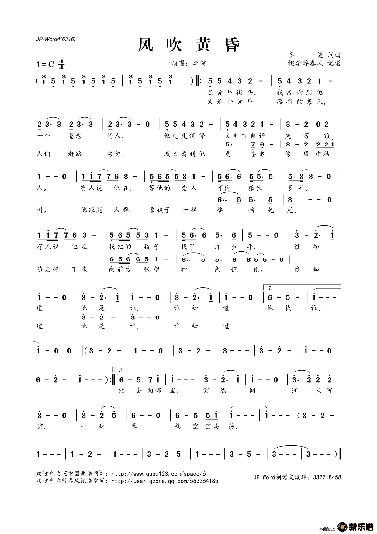李健演唱的风吹黄昏歌词,风吹黄昏简谱.