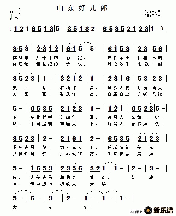 演唱的山东好儿郎歌词,山东好儿郎简谱.