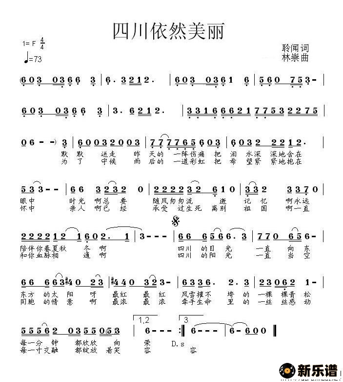 演唱的四川依然美丽歌词,四川依然美丽简谱.