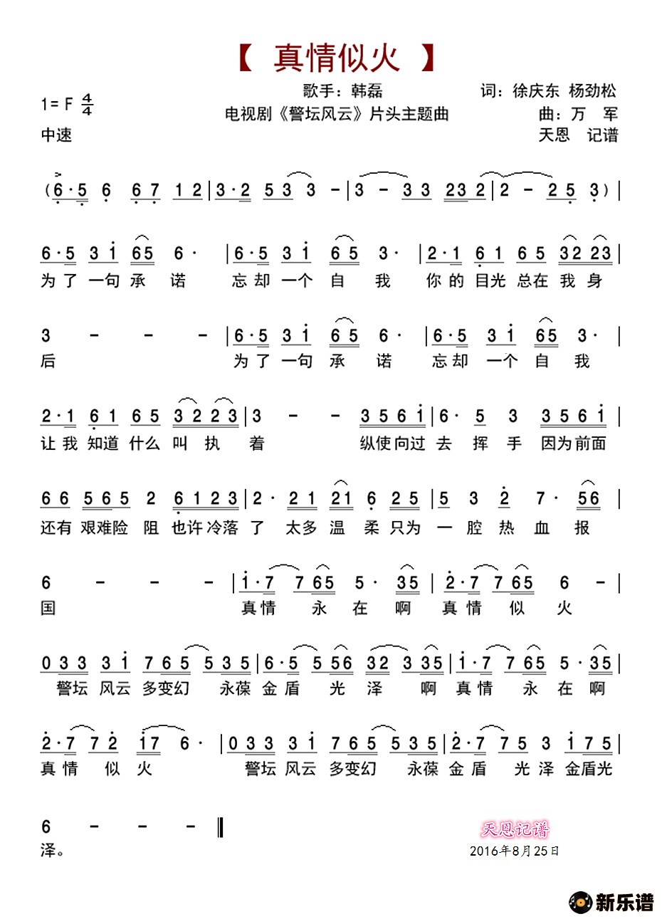 韩磊演唱的真情似火(电视剧《警坛风云》片头主题歌)歌词,真情似火(电视剧《警坛风云》片头主题歌)简谱.