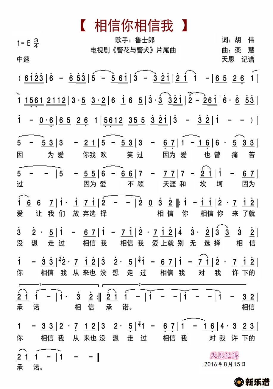 鲁士郎演唱的相信你相信我(《警花与警犬》片尾主题曲)歌词,相信你相信我(《警花与警犬》片尾主题曲)简谱.