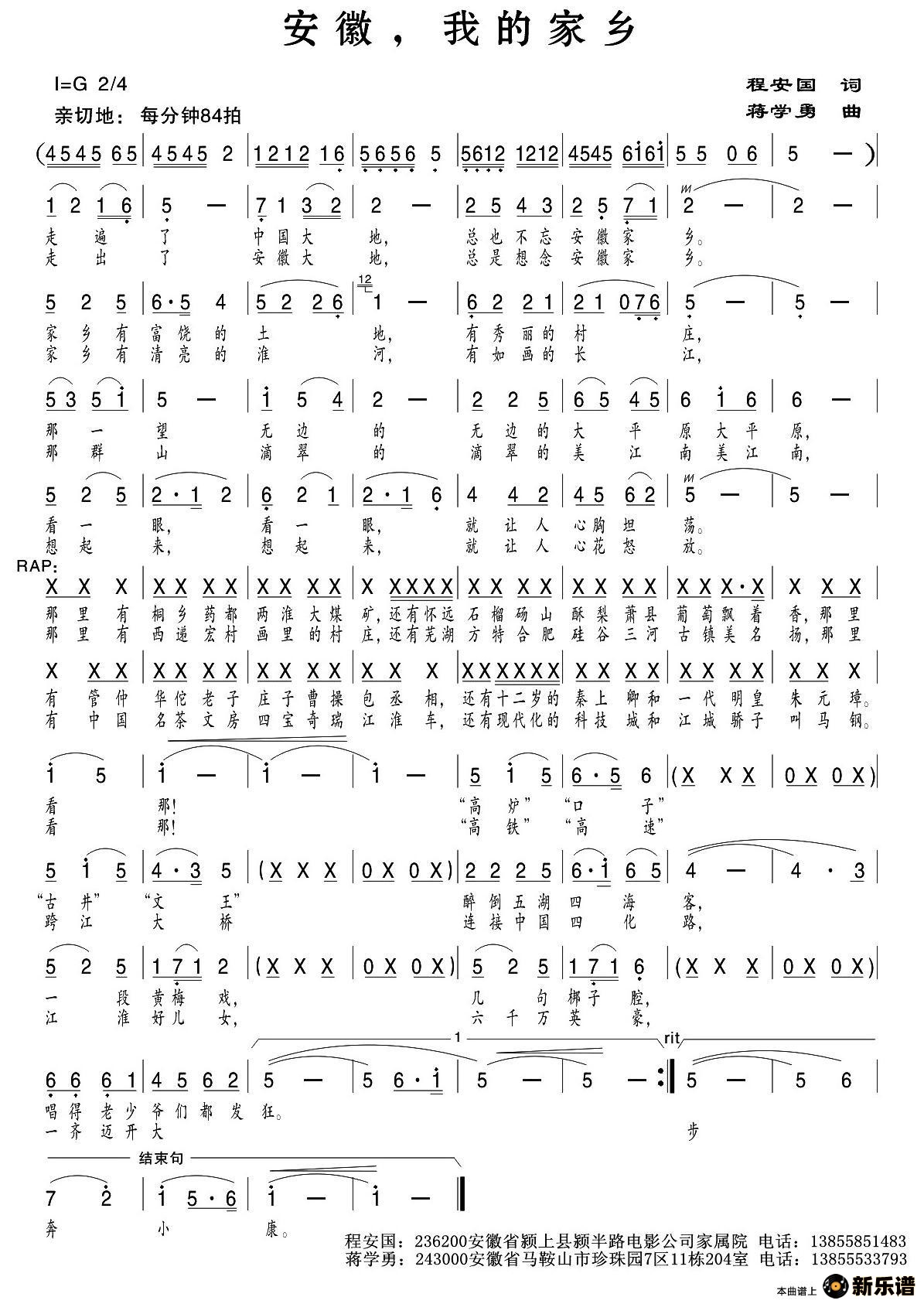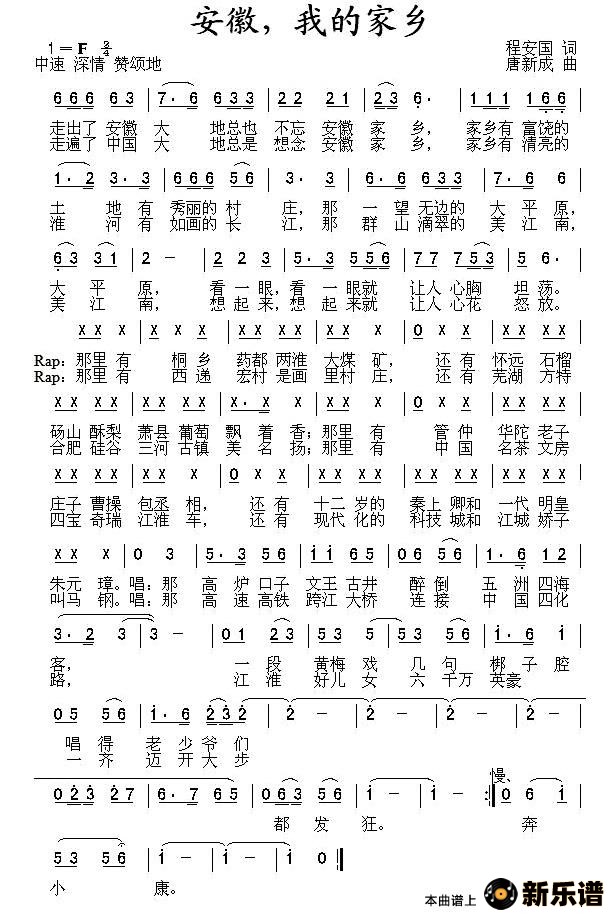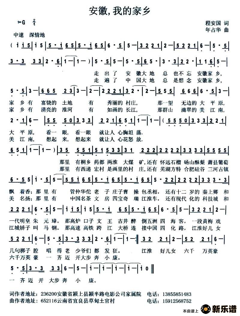 演唱的安徽,我的家乡歌词,安徽,我的家乡简谱.