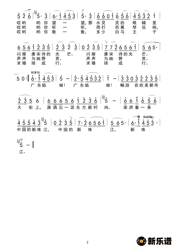 演唱的广东姑娘歌词,广东姑娘简谱.
