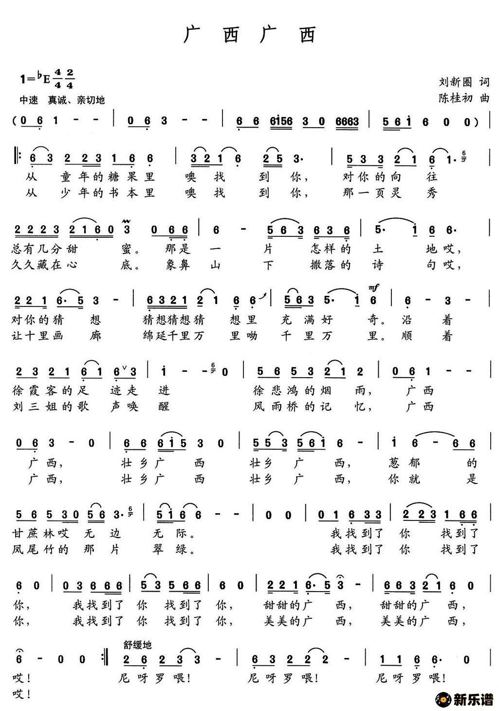 演唱的广西广西歌词,广西广西简谱.