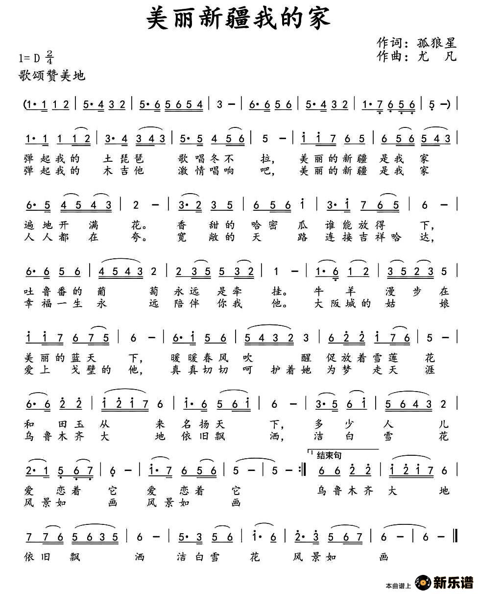 演唱的美丽新疆我的家歌词,美丽新疆我的家简谱.