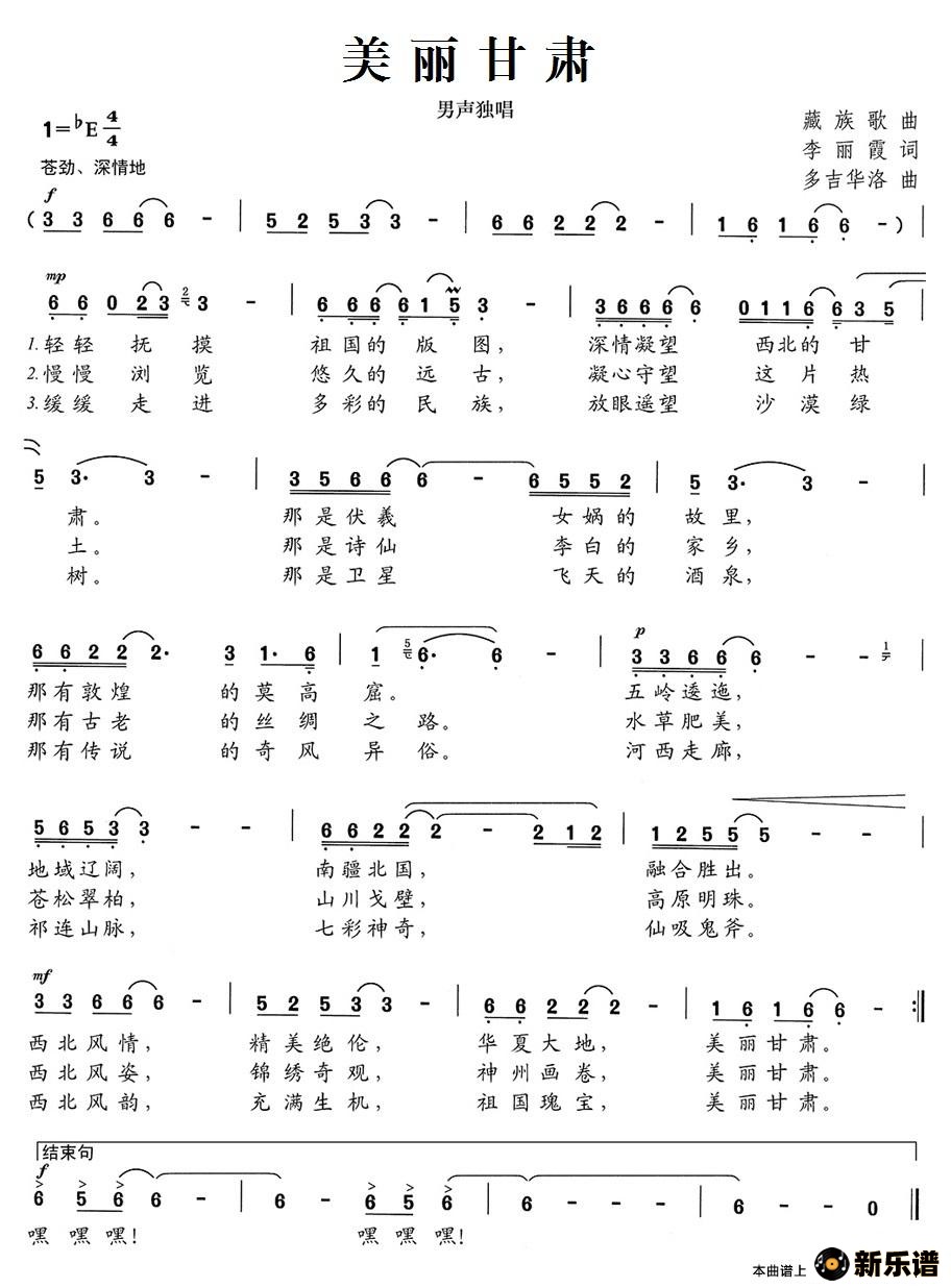 演唱的美丽甘肃歌词,美丽甘肃简谱.
