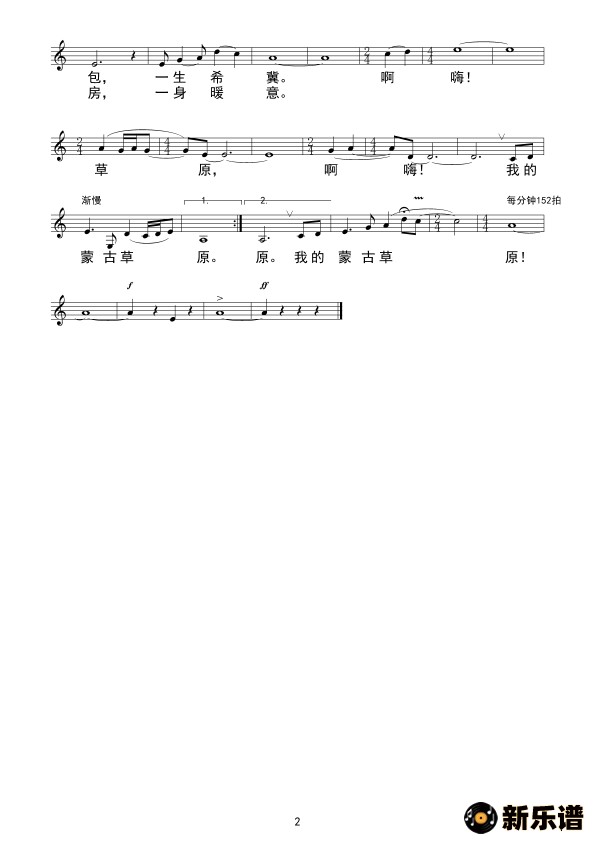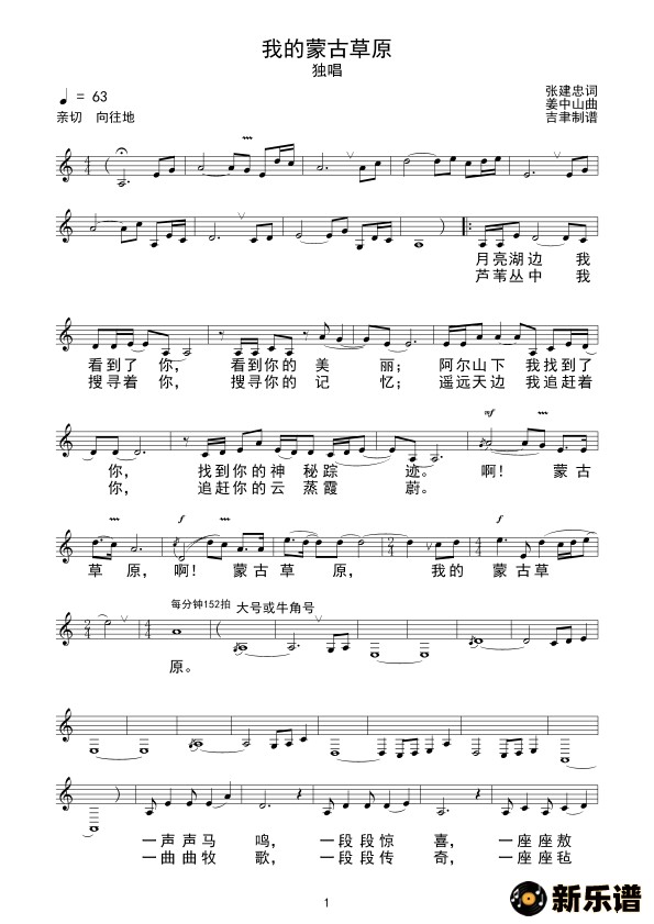 演唱的我的蒙古草原(线谱)歌词,我的蒙古草原(线谱)简谱.