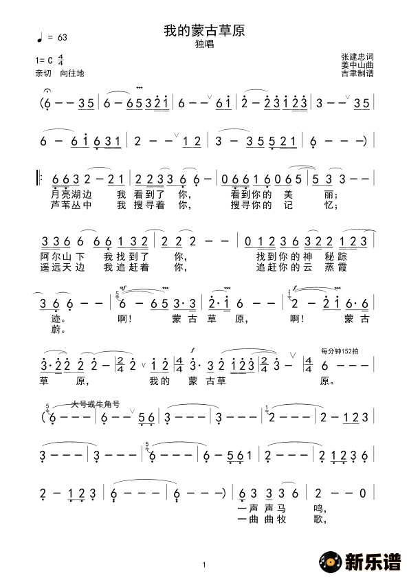 演唱的我的蒙古草原歌词,我的蒙古草原简谱.