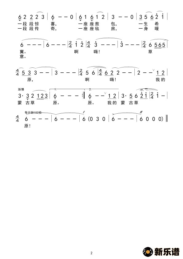 美丽的草原我的家(线谱)-内蒙古蒙族青年合唱团