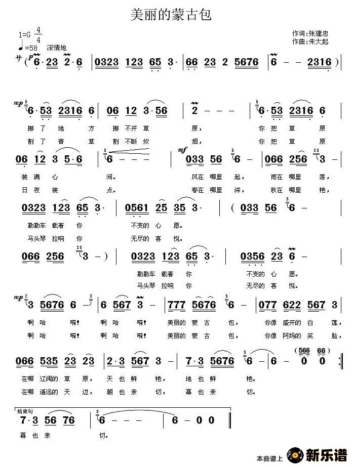 演唱的美丽的蒙古包歌词,美丽的蒙古包简谱.