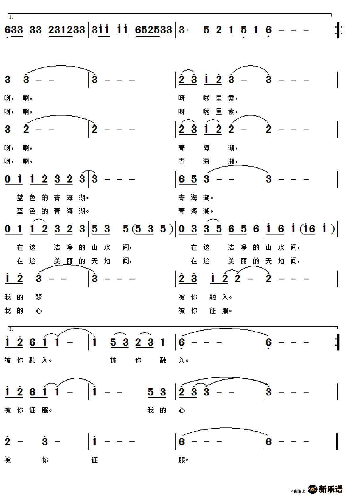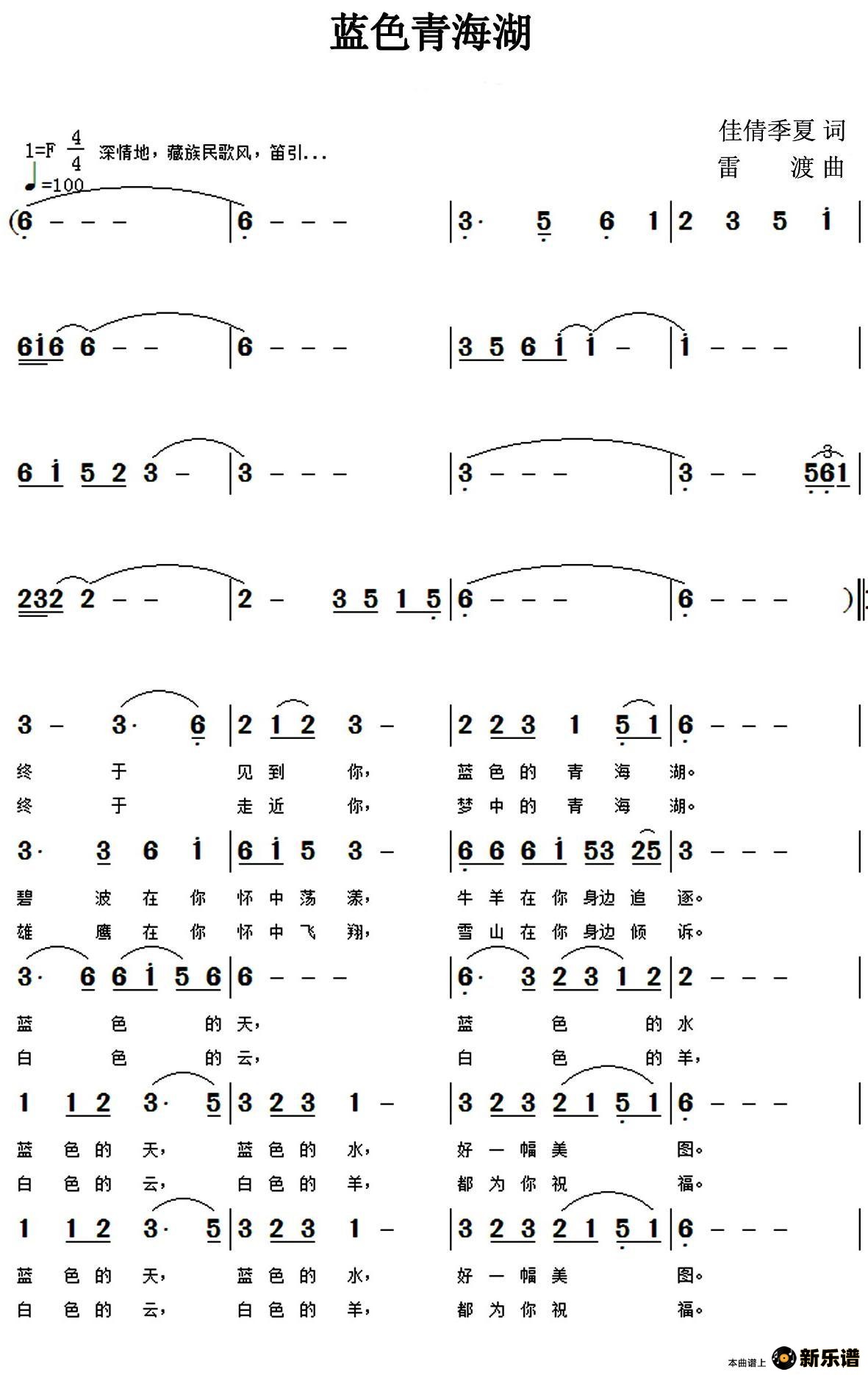 演唱的蓝色青海湖歌词,蓝色青海湖简谱.
