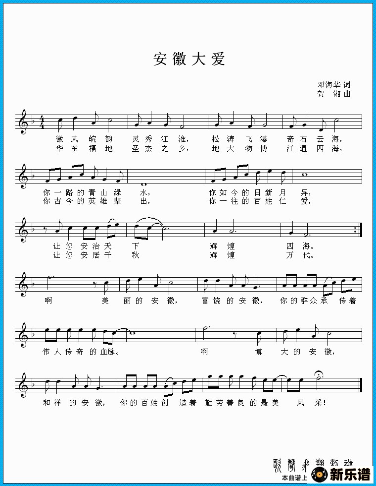 演唱的安徽大爱歌词,安徽大爱简谱.