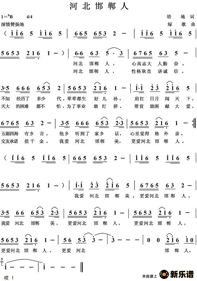 演唱的河北邯郸人歌词,河北邯郸人简谱.