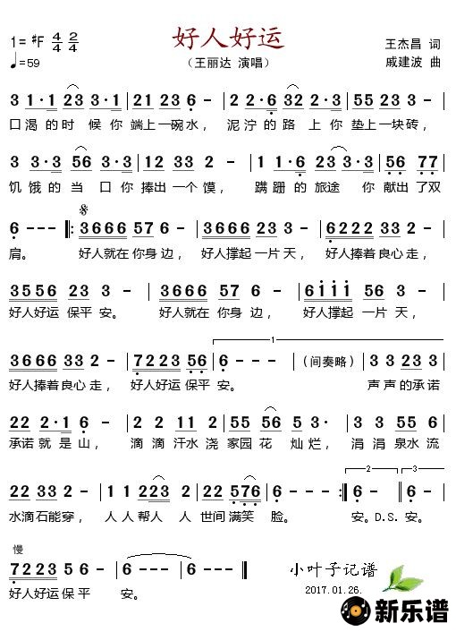 王丽达演唱的好人好运歌词,好人好运简谱.