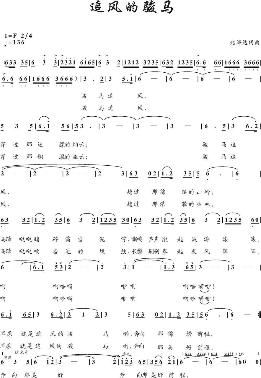 演唱的追风的骏马歌词,追风的骏马简谱.