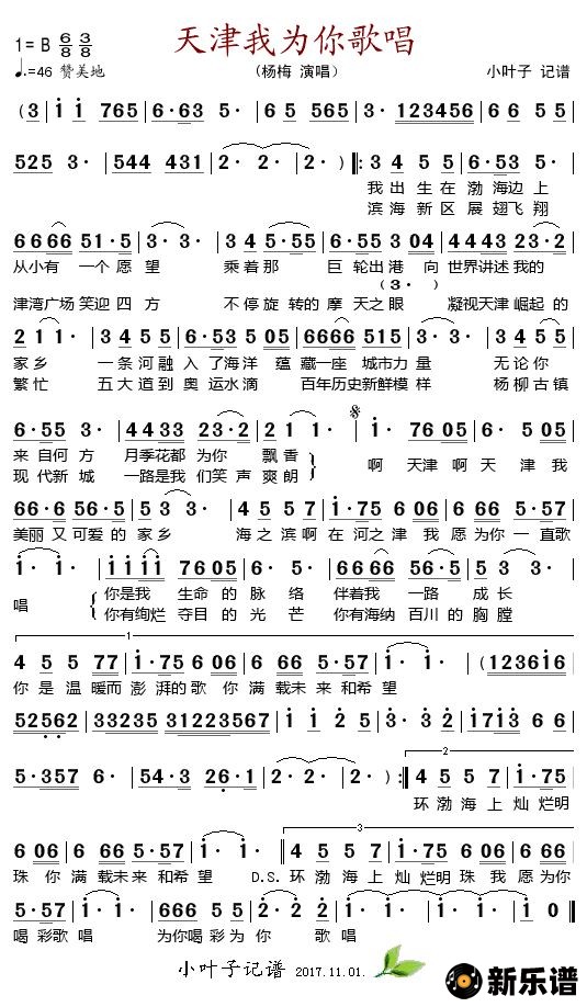 《天津我为你歌唱》简谱 杨梅-小叶子制谱