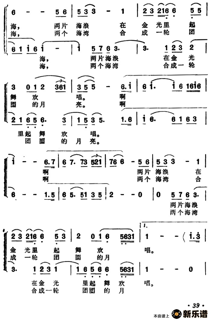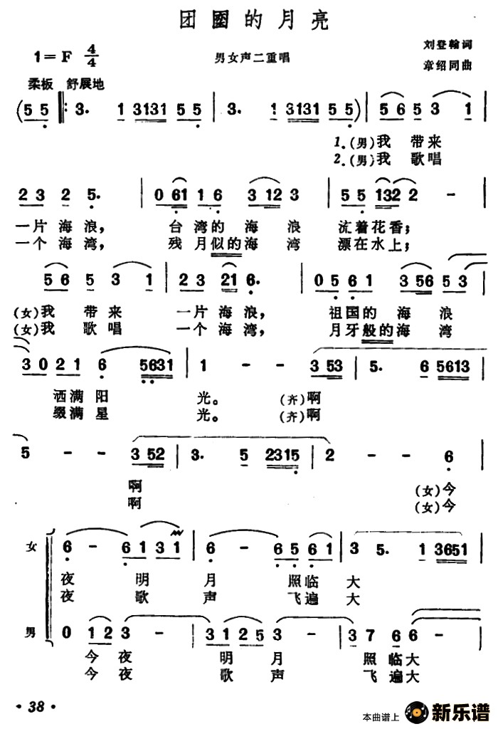 演唱的团圆的月亮歌词,团圆的月亮简谱.
