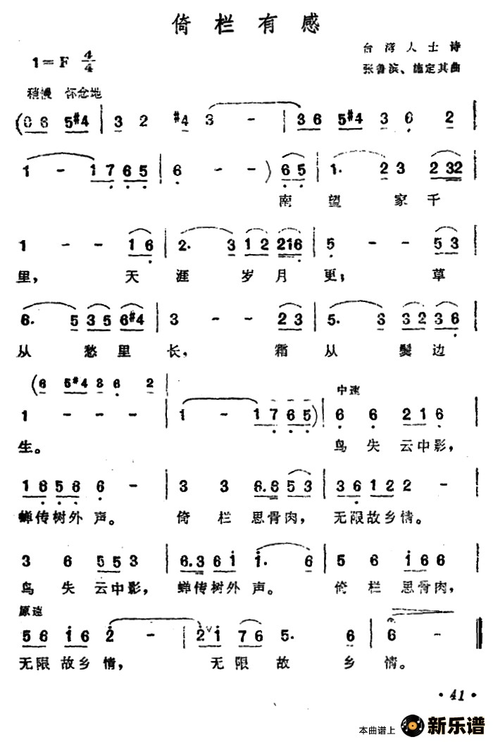 演唱的倚栏有感歌词,倚栏有感简谱.
