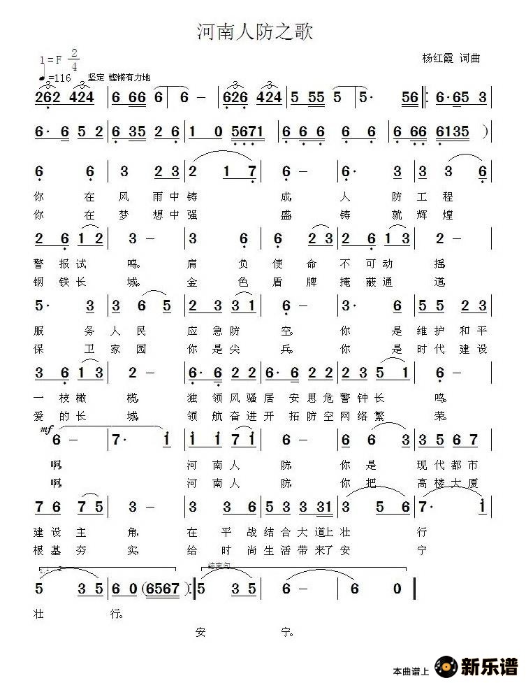 演唱的河南人防之歌歌词,河南人防之歌简谱.