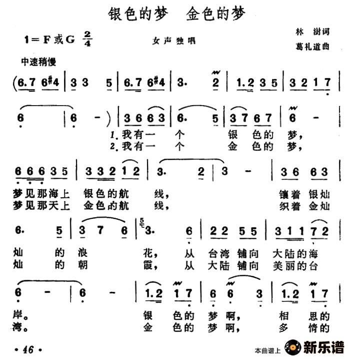 演唱的银色的梦 金色的梦歌词,银色的梦 金色的梦简谱.