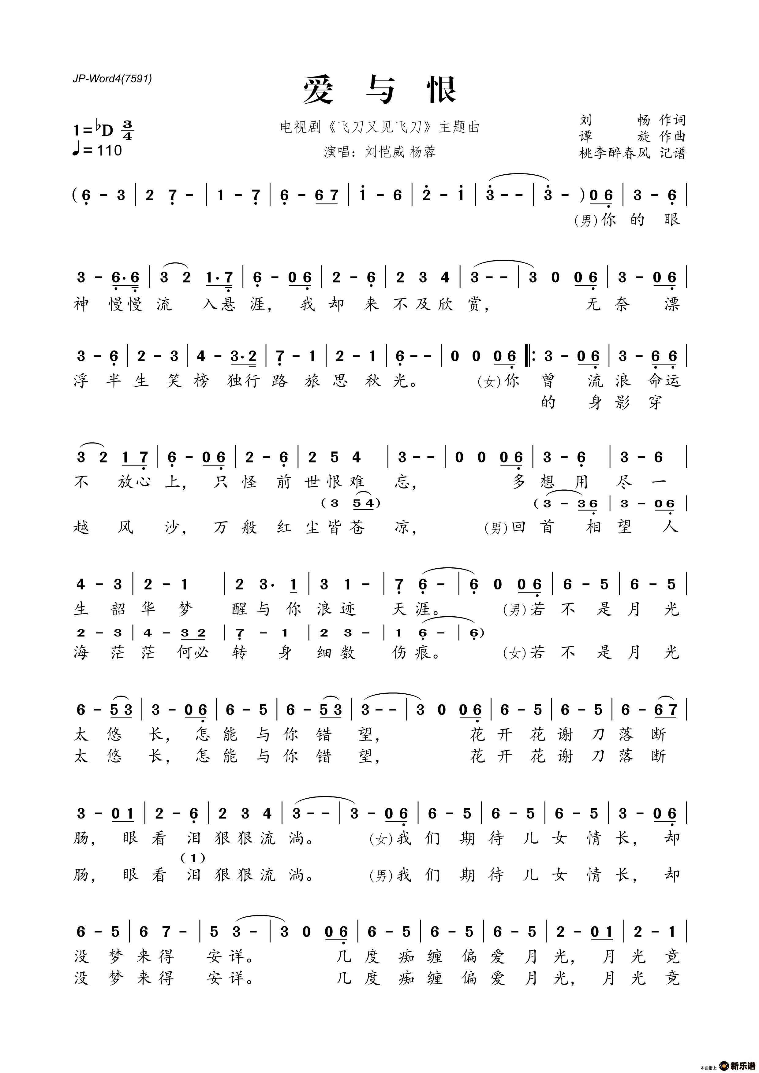 《爱与恨》简谱 刘恺威/杨蓉-桃李醉春风制谱