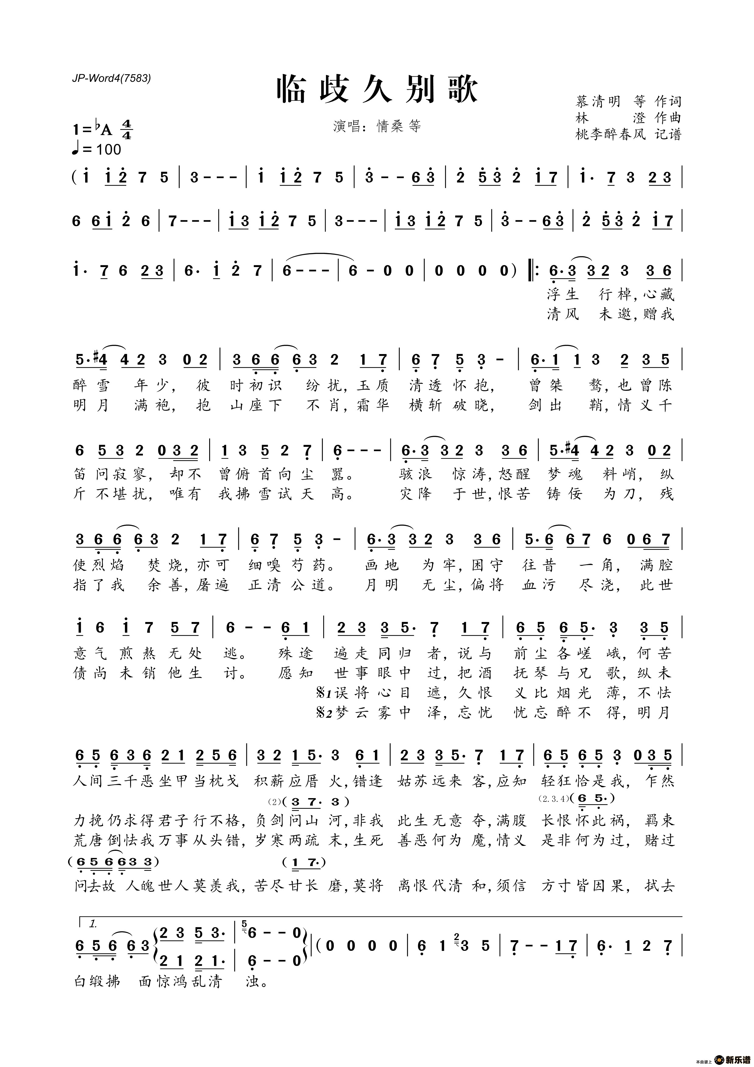 《临岐久别歌》简谱 情桑等-桃李醉春风制谱