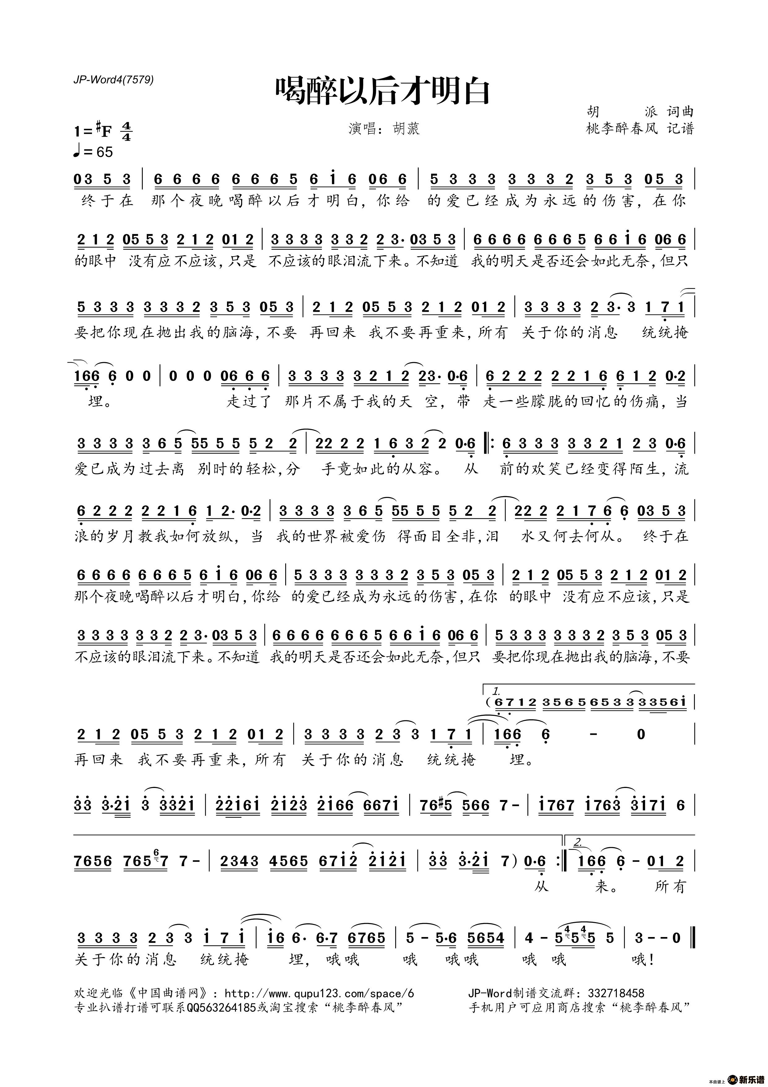 《喝醉以后才明白》简谱 胡蒎-桃李醉春风制谱
