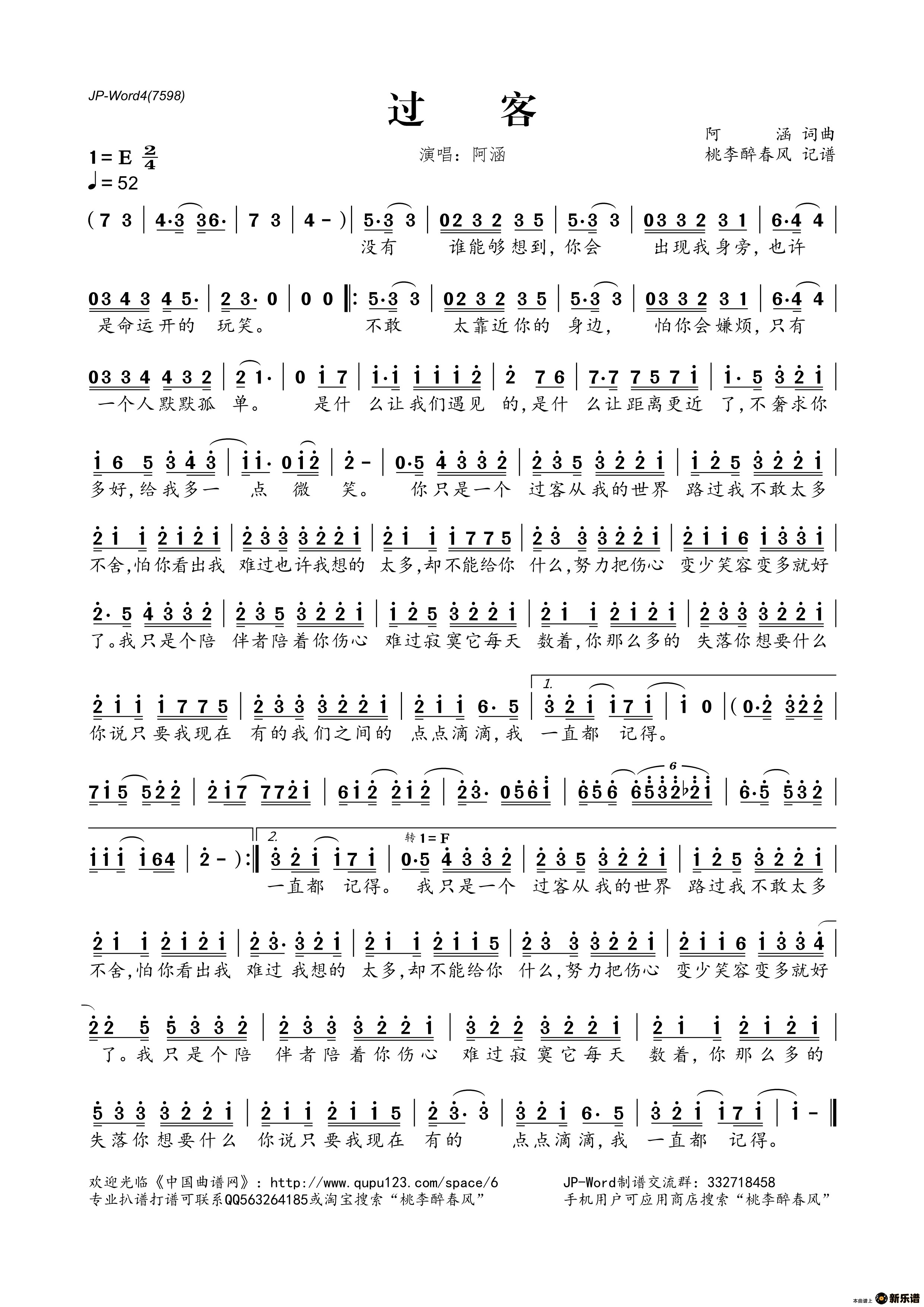 过客(香港电视剧《过客》主题歌)最新曲谱