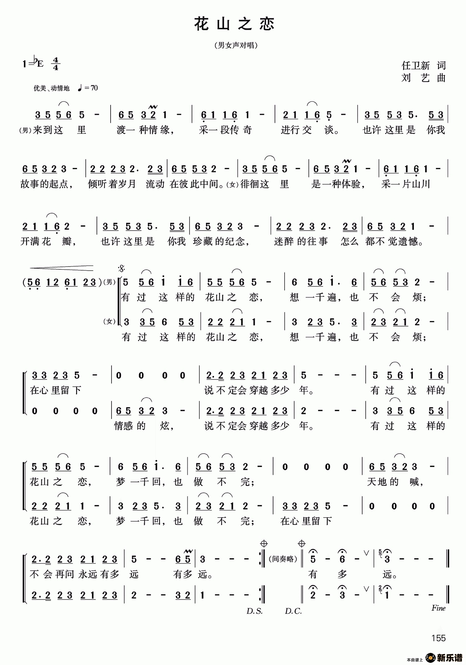 演唱的花山之恋歌词,花山之恋简谱.