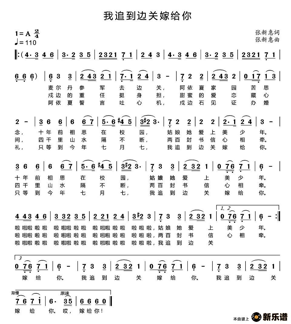 演唱的我追到边关嫁给你歌词,我追到边关嫁给你简谱.