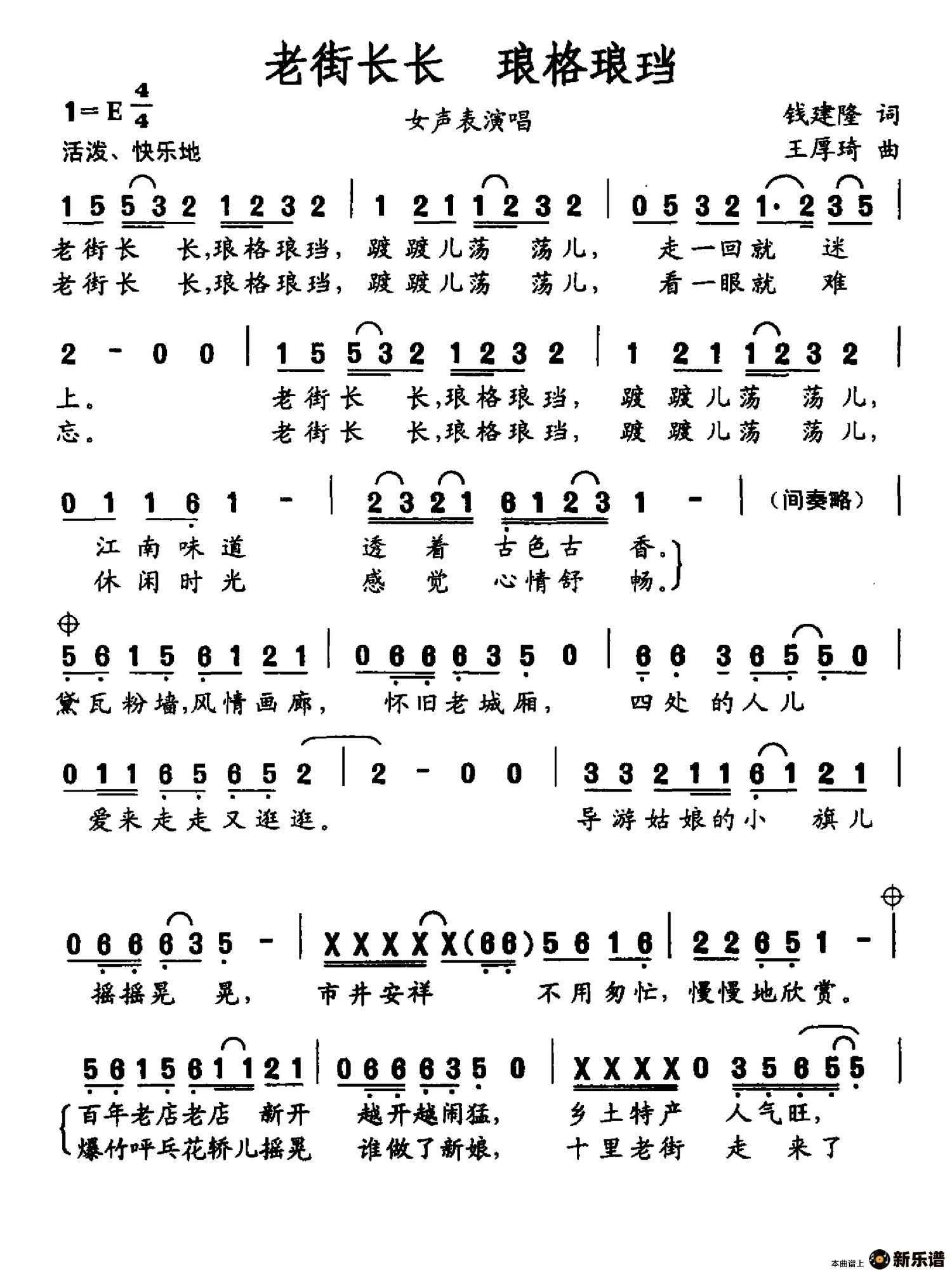 演唱的老街长长 琅格琅珰歌词,老街长长 琅格琅珰简谱.