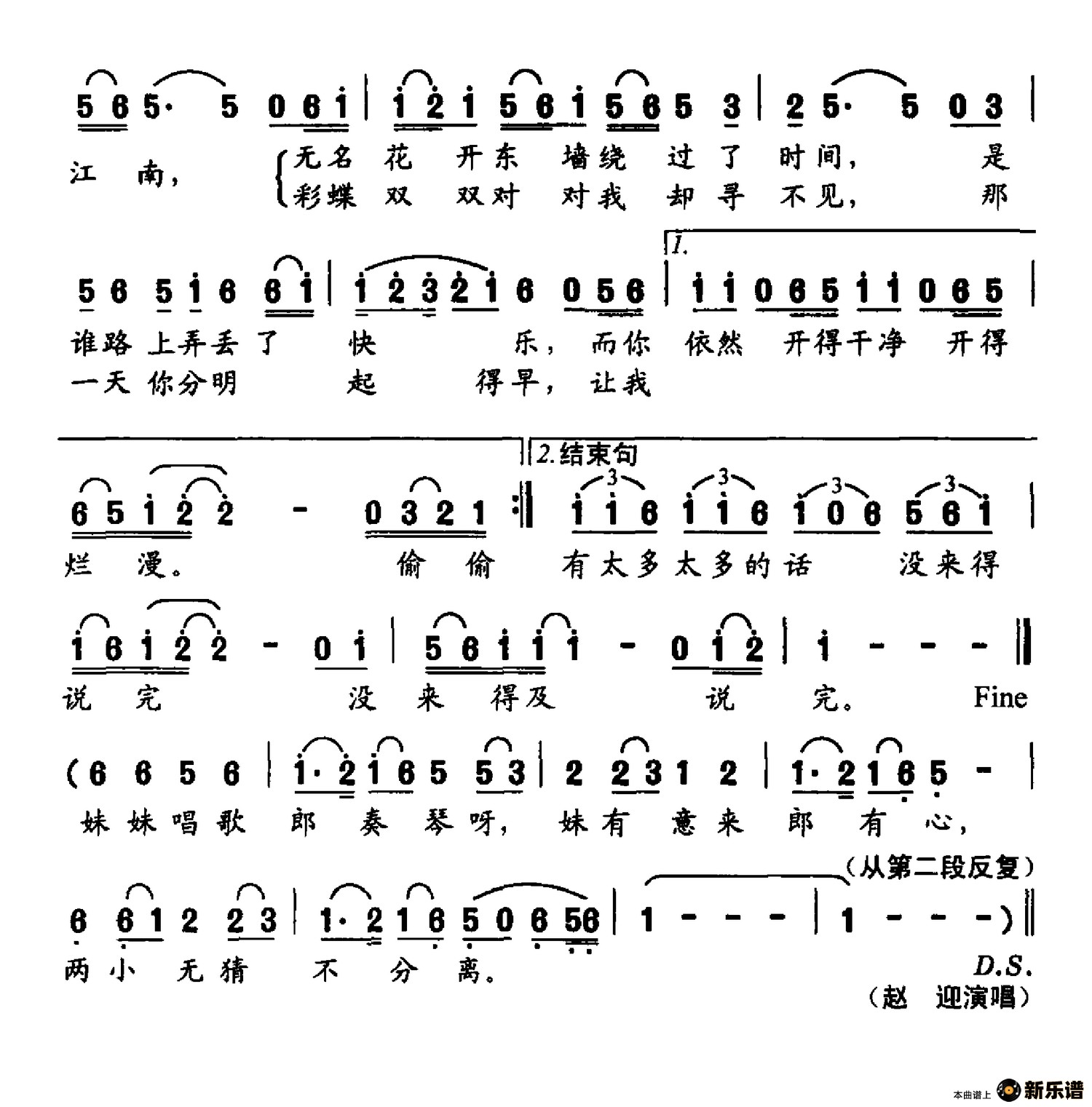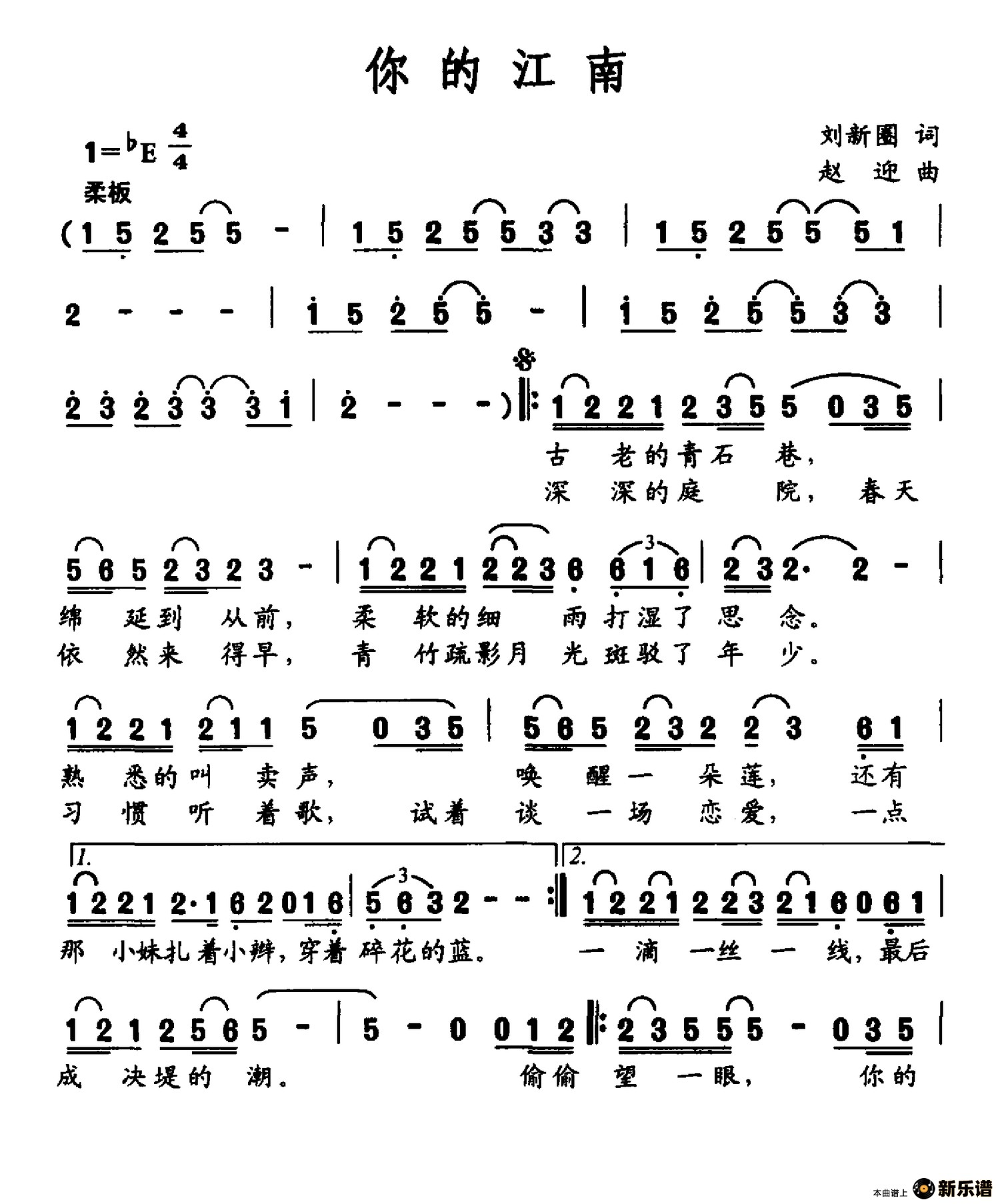 《你的江南》简谱 赵迎