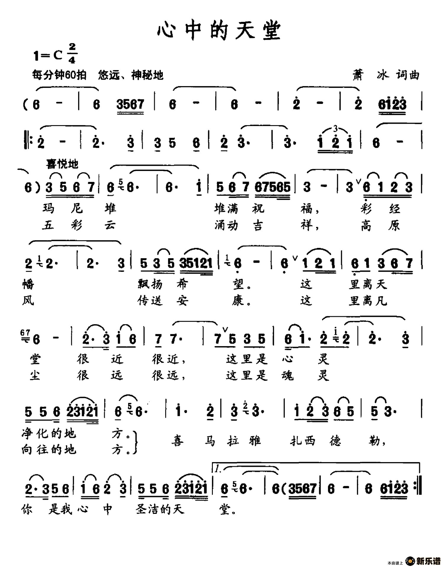 > 心中的天堂简谱