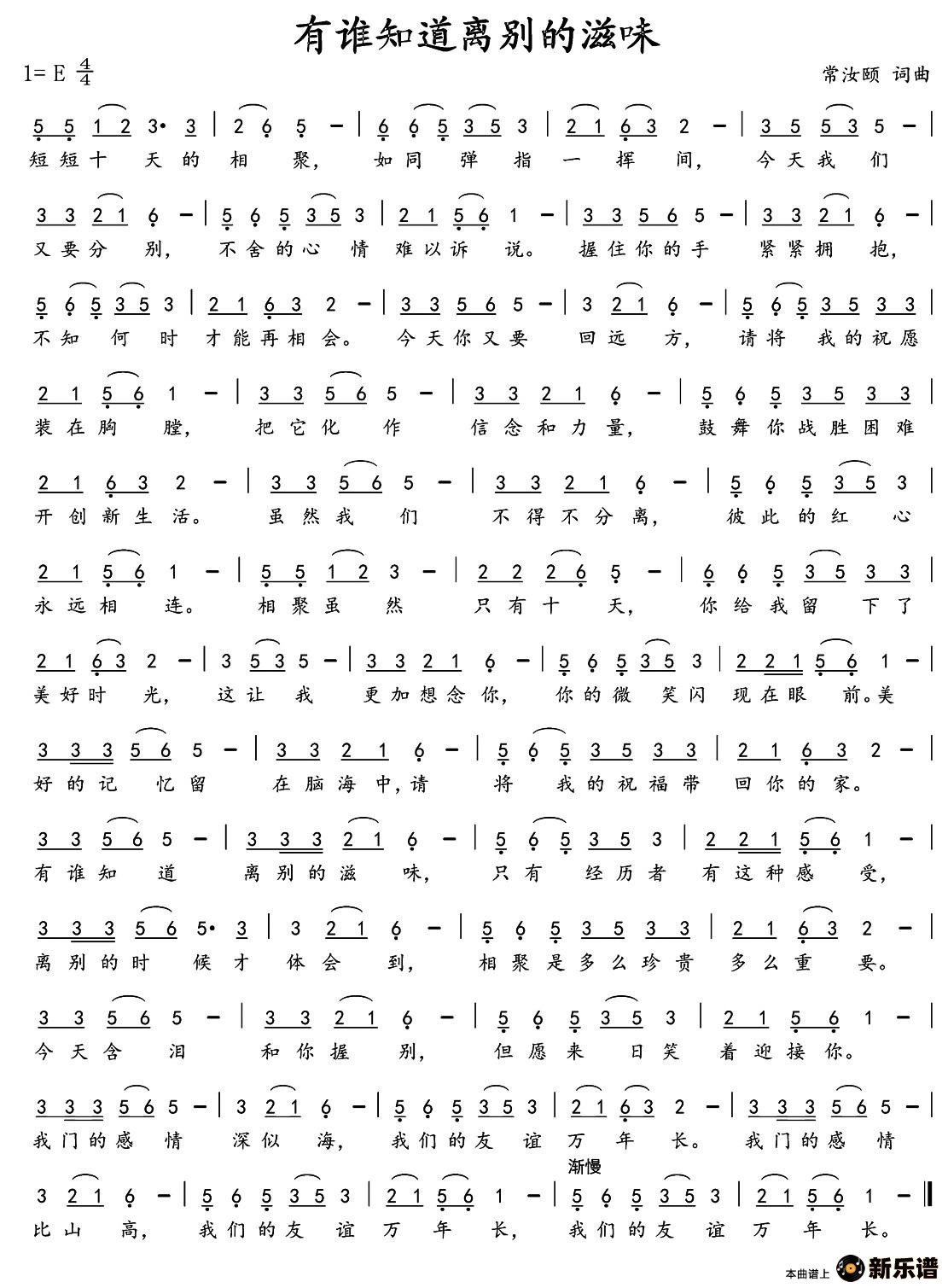 演唱的有谁知道离别的滋味歌词,有谁知道离别的滋味简谱.