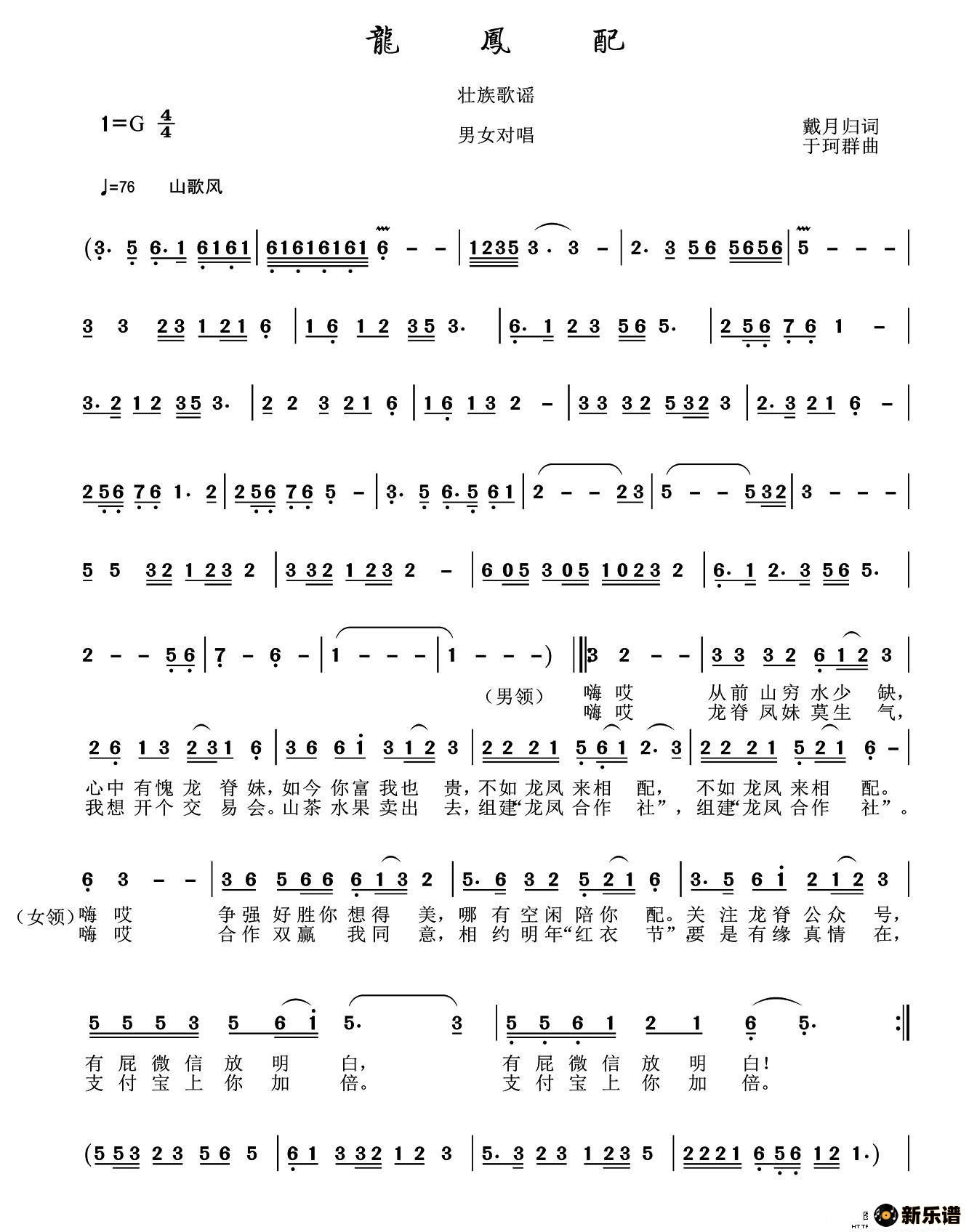 佚名演唱的龙凤配歌词,龙凤配简谱.