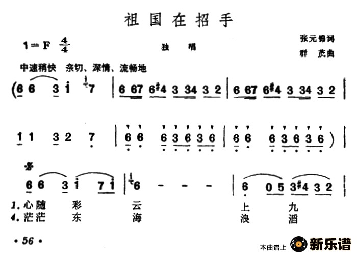 祖国在招手/ 相关曲谱