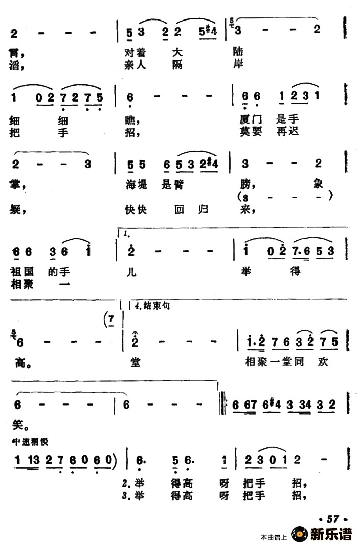 《祖国在招手》简谱
