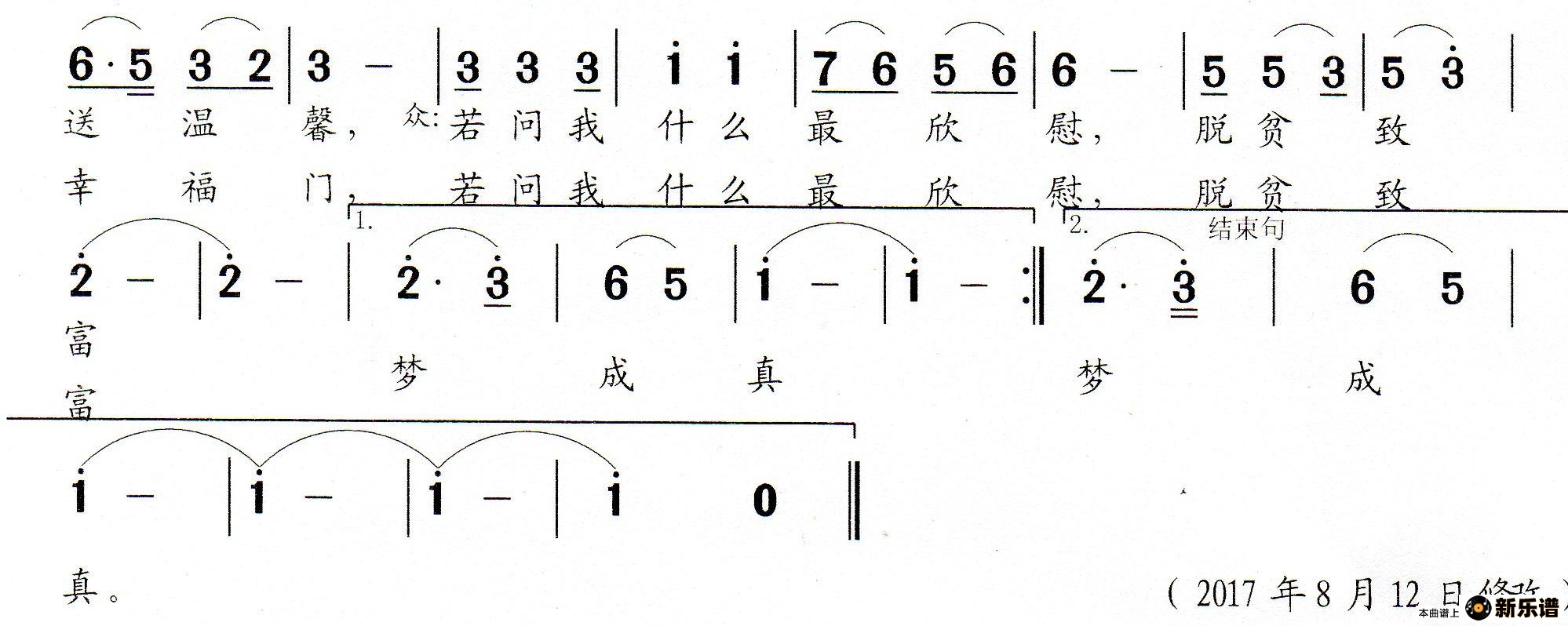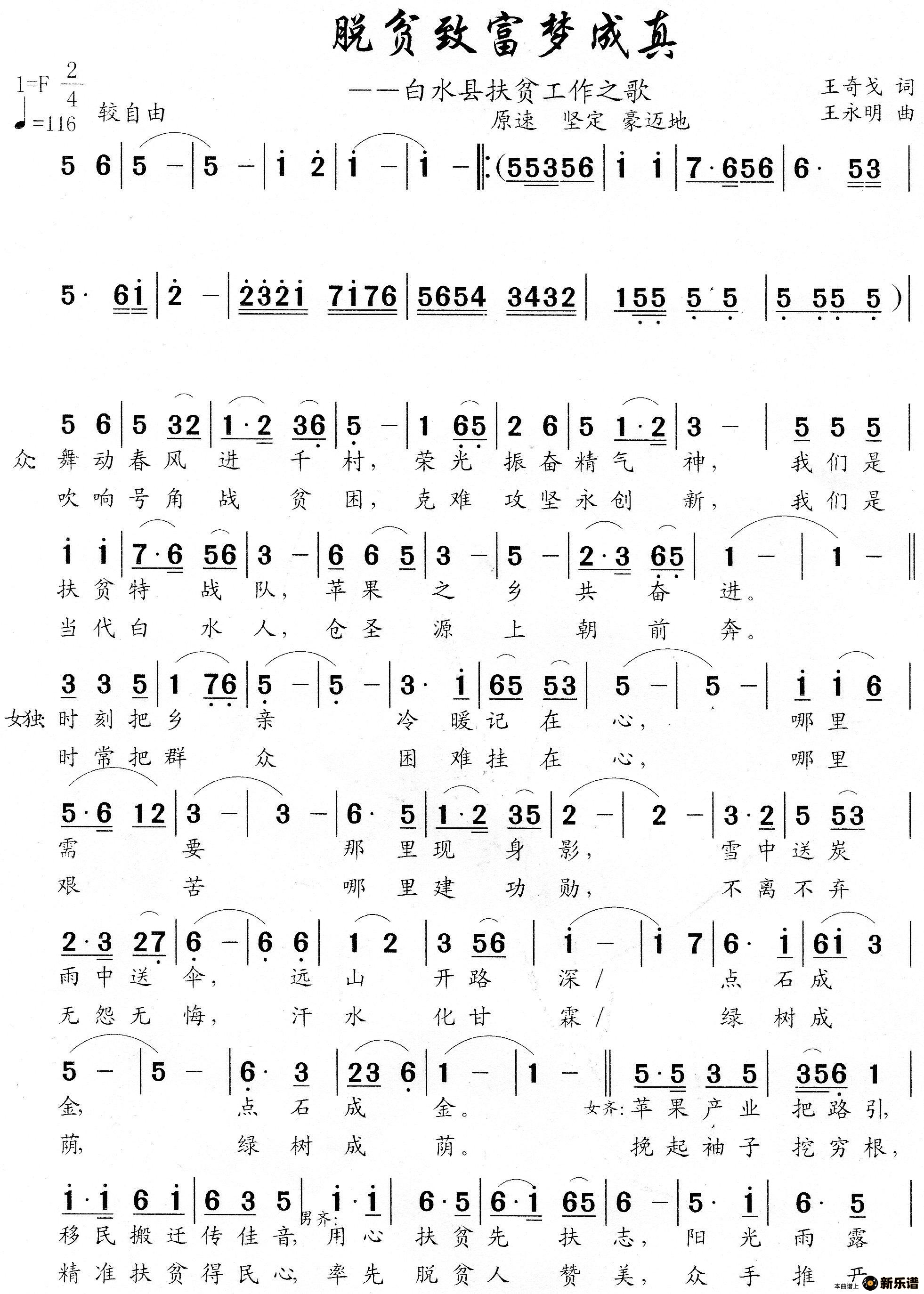 《脱贫致富梦成真(——白水县扶贫工作之歌)》简谱 陕歌合唱队